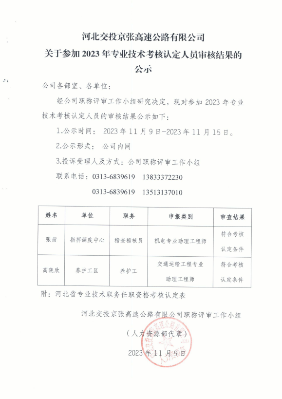 關(guān)于參加 2023 年專業(yè)技術(shù)考核認(rèn)定人員審核結(jié)果的公示
