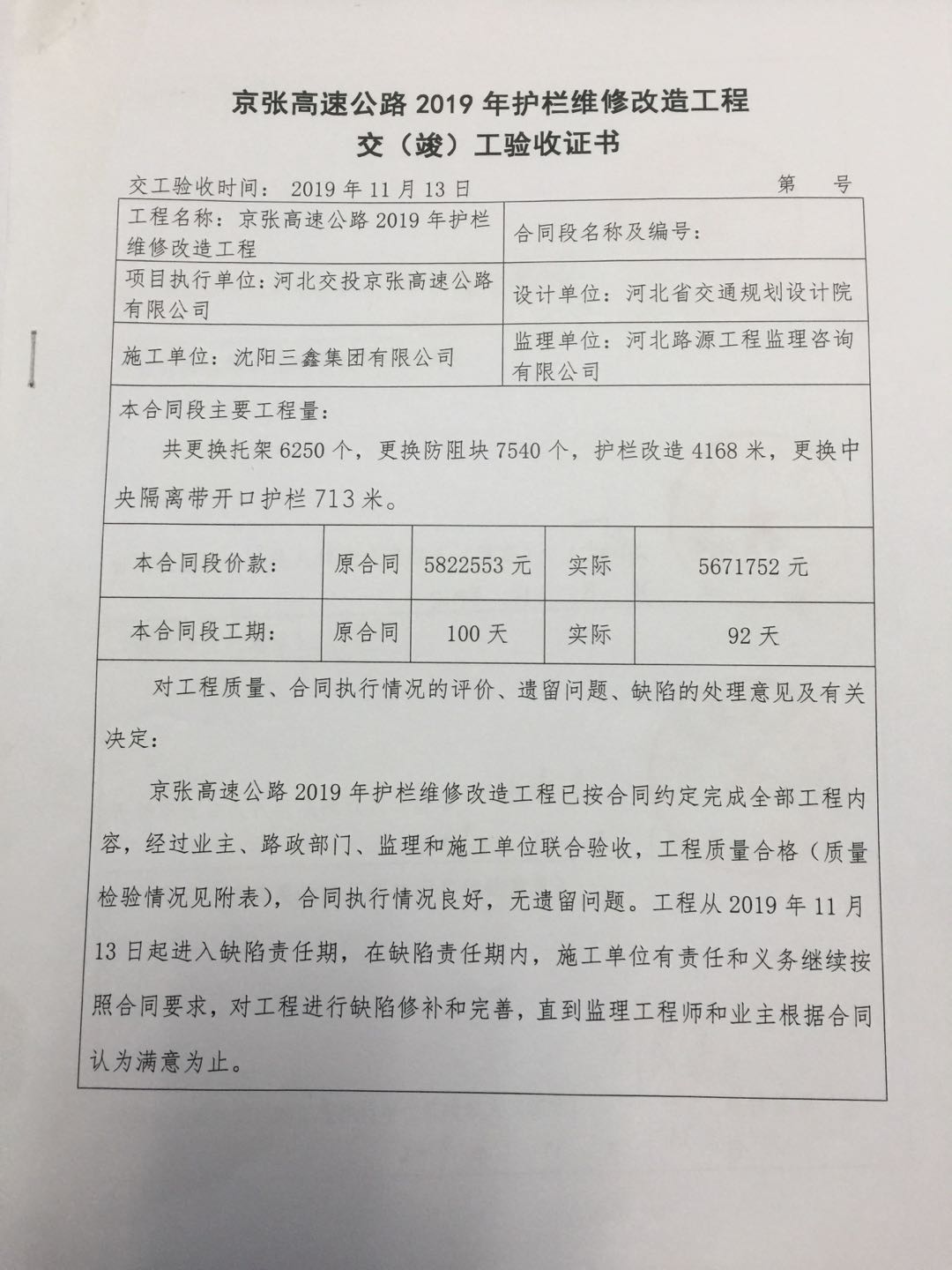 京張高速公路2019年護欄維修改造工程